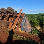 Camión granelero vuelca en Abaí Caazapá y derrama gran carga de soja sin dejar heridos