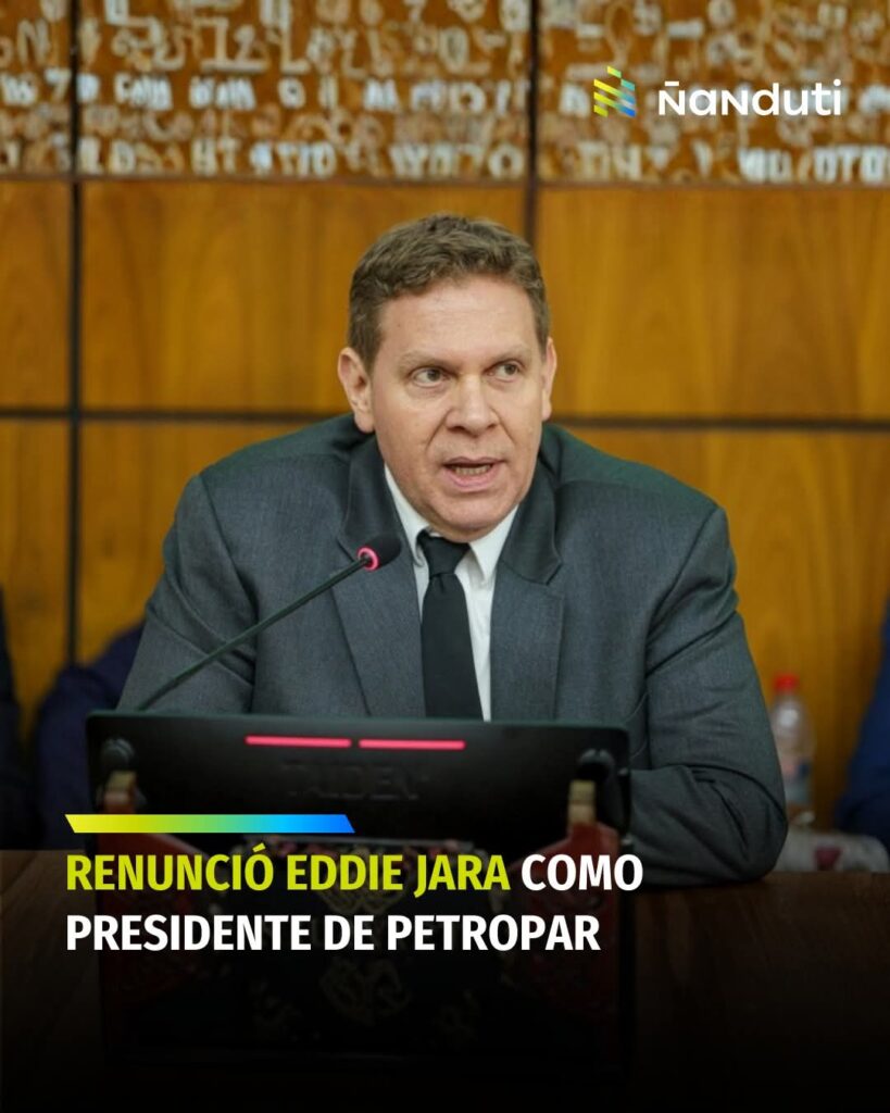 Renunció Eddie Jara a la Presidencia de Petropar marzo 10, 2026 por Rubén Darío Comparte en:«Con gratitud por el honor de haber servido al Paraguay y con la convicción de que el respeto a las instituciones siempre debe prevalecer», expresó el extitular de Petropar Ñanduti Comparte en: